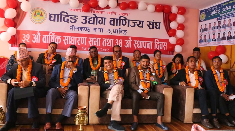 कार्यक्रमको आयोजक थियो जिल्ला उद्योग वाणिज्य संघ, धादिङ र प्रमुख अतिथि हुनुहन्थ्यो नेपाल उद्योग वाणिज्य महासंघका अध्यक्ष चन्द्रप्रसाद ढकाल । अनि प्रसंग थियो सङ्घको ३२ औँ वार्षिक साधारणसभा समारोह ।