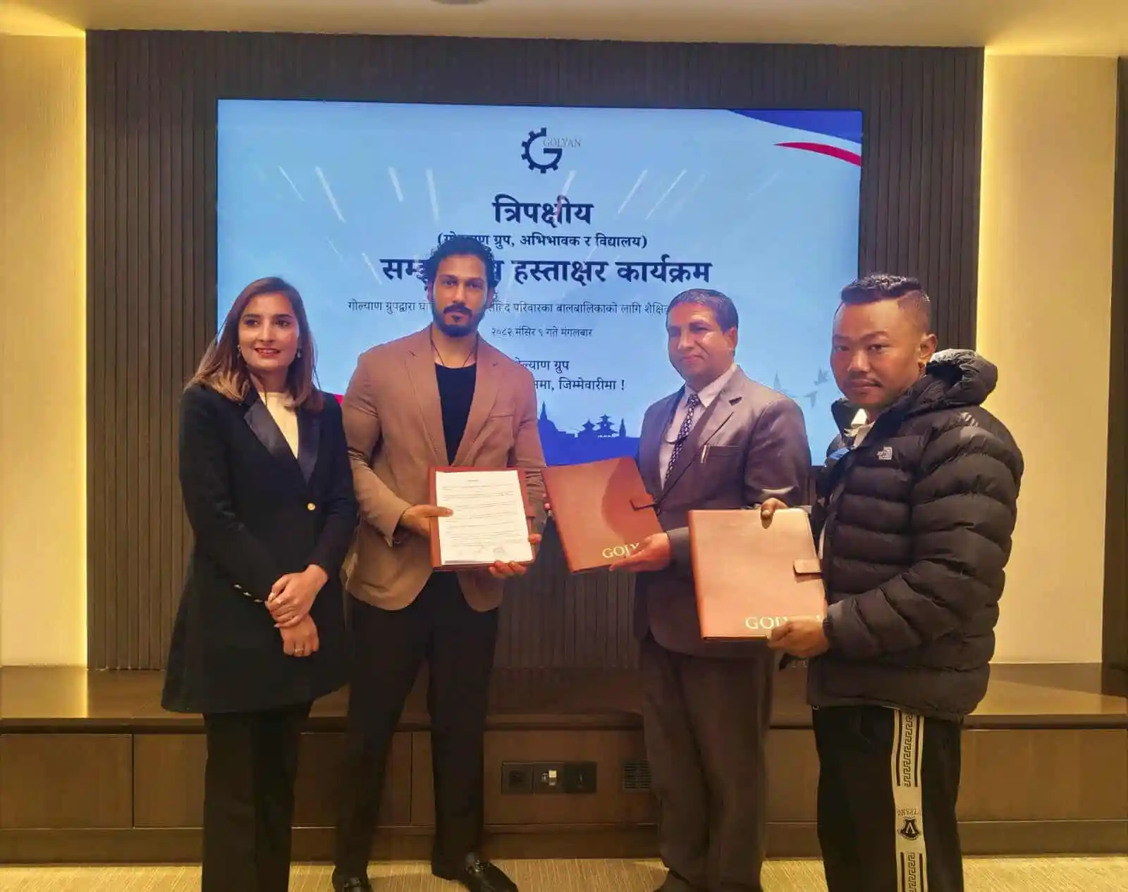 जेनजी आन्दोलनका शहीदका बालबालिकालाई अध्ययनको लागि गोल्याण ग्रुप, विद्यालय र अभिभावबीच त्रिपक्षीय सम्झौता भएको छ। गोल्याणले गत असोज २४ मा गरेको घोषणालाई कार्यान्वयन गर्ने क्रममा त्रिपक्षीय सम्झौता भएको हो।