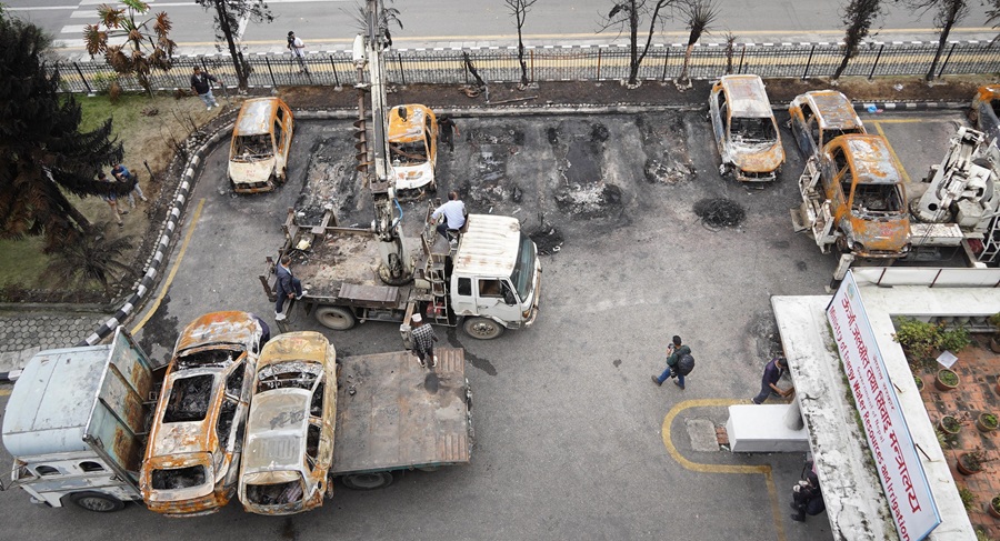भदौ २३ र २४ गते भएको जेनजी आन्दोलनका क्रममा सवारीसाधनसहित सरकारी र निजी सम्पतीमाथि आन्दोलनकारीले आगजनी र तोडफोड गरेका थिए। आगजनी भएका सवारीसाधनहरू नयाँबानेश्वरस्थित वीरेन्द्र अन्तर्राष्ट्रिय सम्मेलन केन्द्र परिसर, टेकु र कपनमा राखिएको छ।